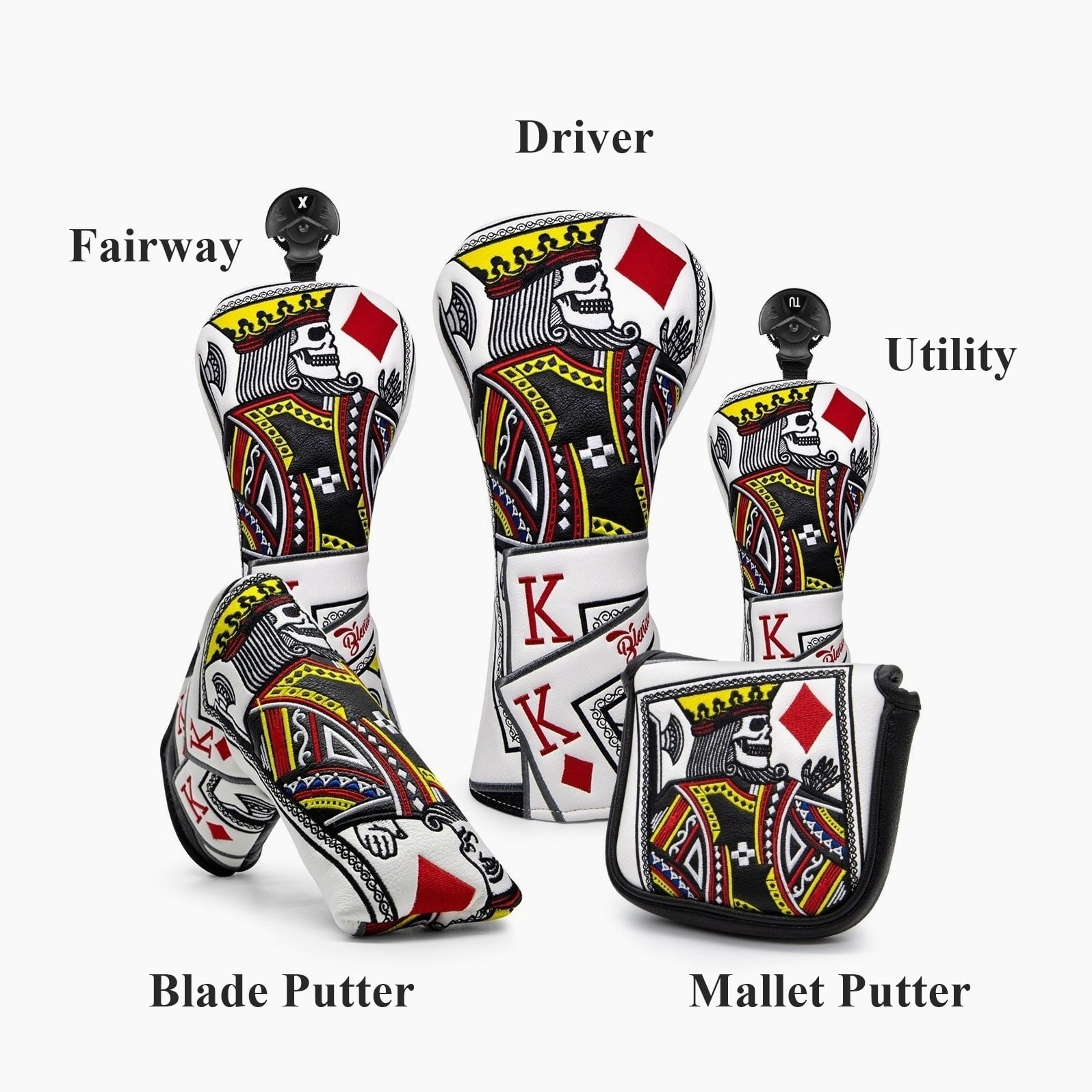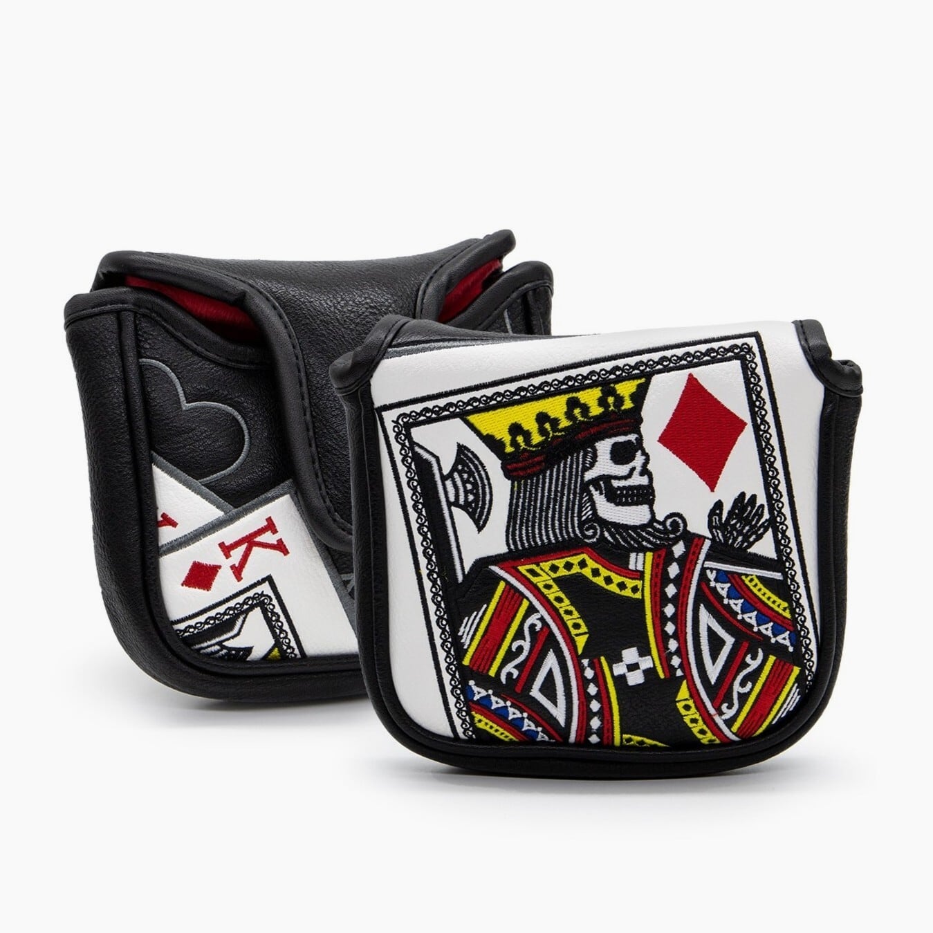 トランプのキングデザインを刺繍で表現した、マレットパター用ゴルフヘッドカバー。