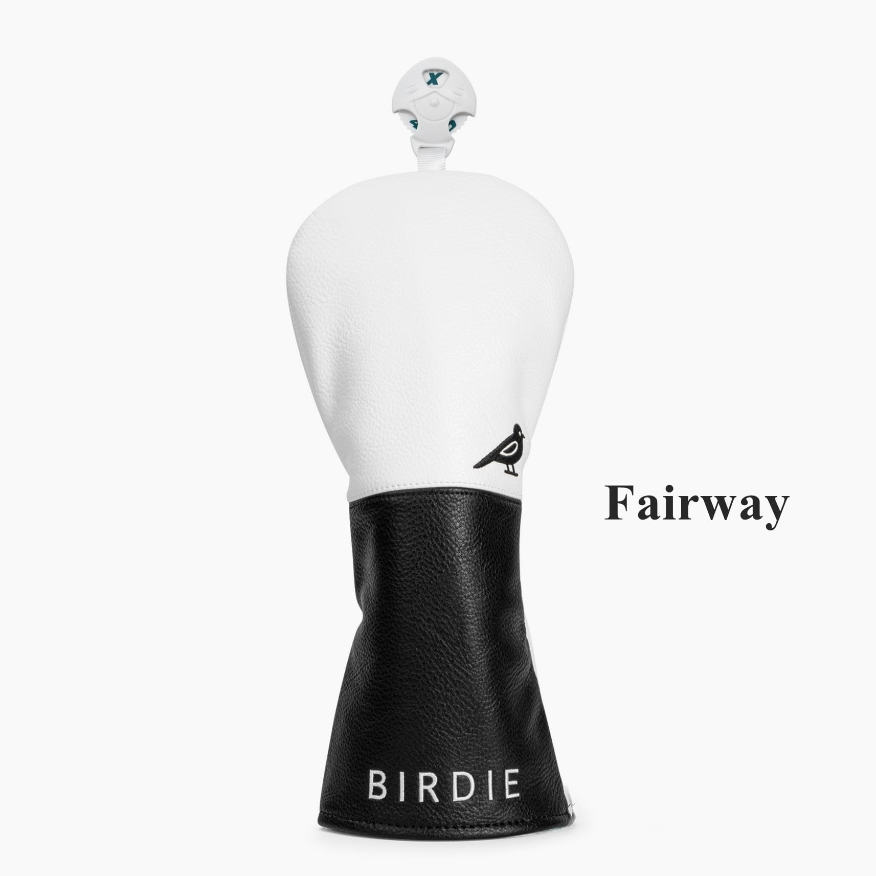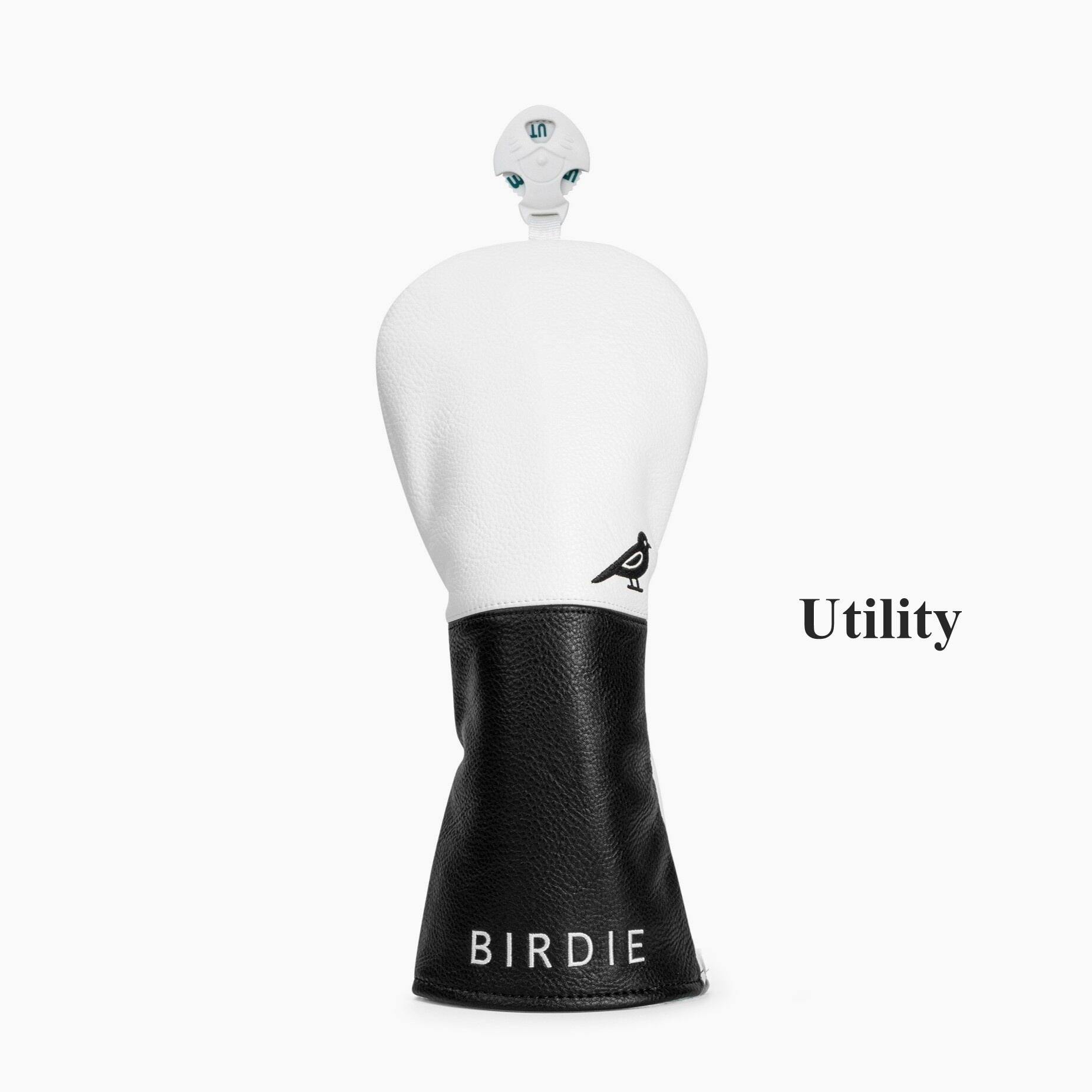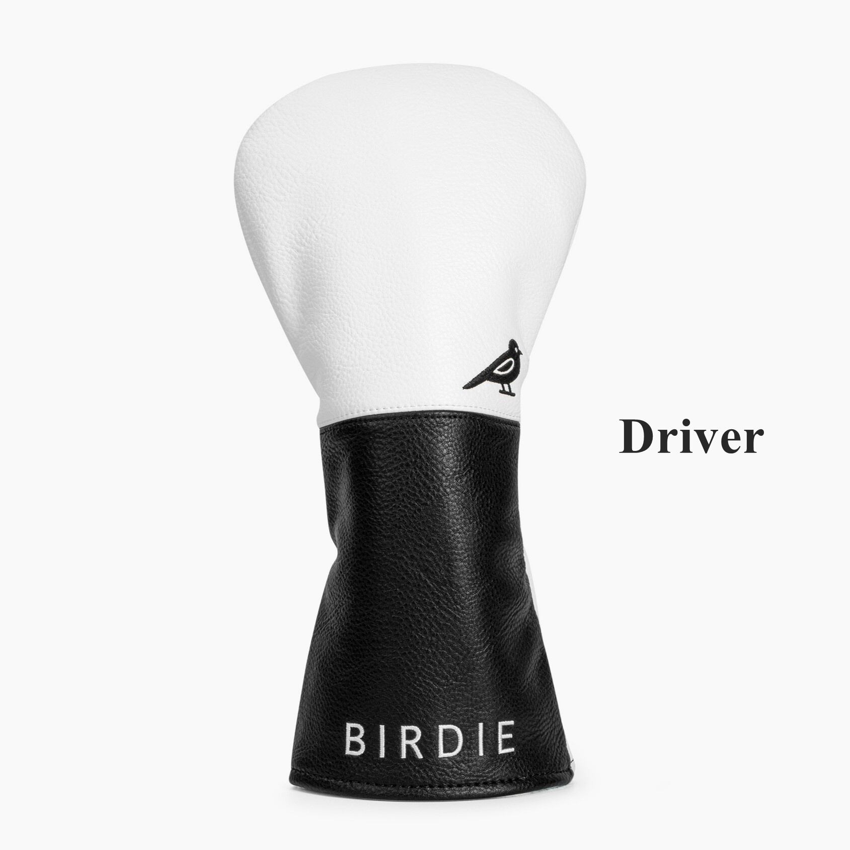 シンプルなモノトーンデザインに鳥の刺繍を施したゴルフヘッドカバー3点セット。