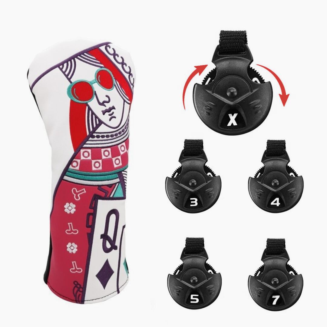 トランプのクイーンをモチーフにしたフェアウェイウッド用ヘッドカバー。