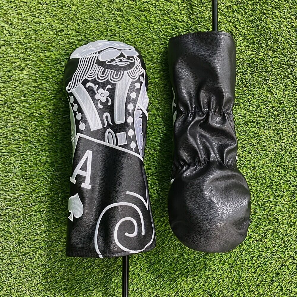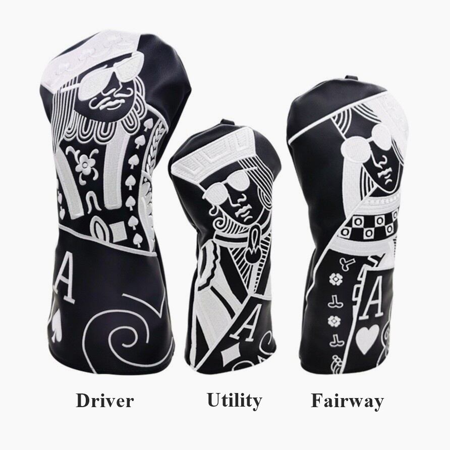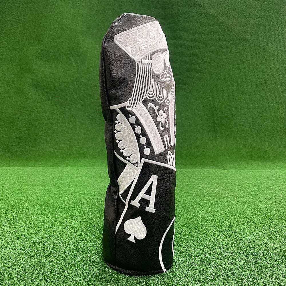 トランプのキングをモノトーンで仕上げたドライバーヘッドカバー。